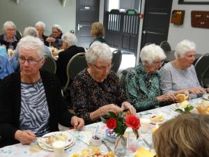 De Paasbrunch met de 80+ dames was zeer geslaagd. Heerlijke lekkernijen, van koffie met wat lekkers, advocaatje of frisdrankje, soep, broodjes, salades, alles ging er met smaak in. De tafels mooi gedekt met paasmotieven, kaarsjes en de gezelligheid, verhalen en grappige voordrachten. Weer iets anders om dankbaar op terug te kijken.